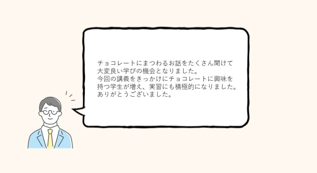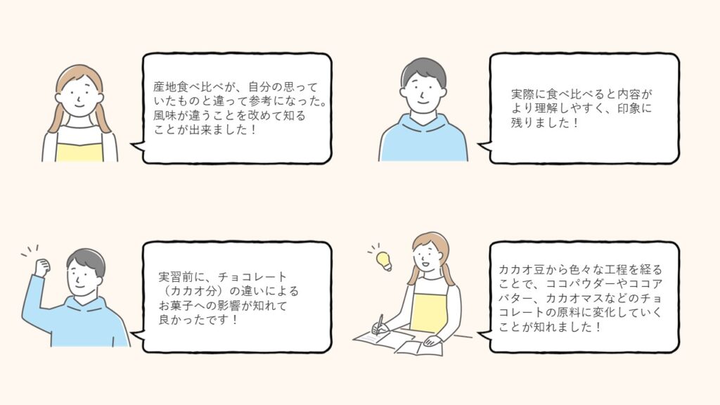 実習前にチョコレートについて学びを深めていただく機会となっていれば嬉しいです。