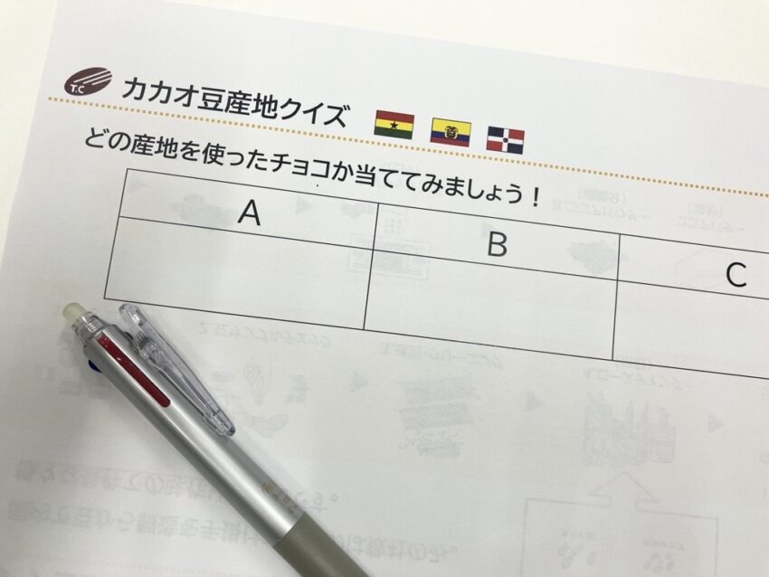 産地別チョコレートの食べ比べやチョコレートの規格当てクイズでは、生徒の皆様には悩みながらも笑顔で参加いただきました!