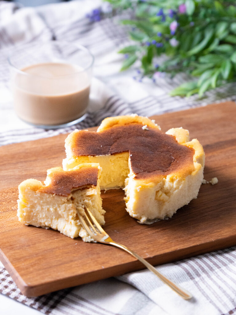 フランス産クリームチーズとニューヨークのチーズケーキにも使用されるアメリカ産のクリームチーズをブレンドした酸味のちょうどいいバスクチーズケーキ。