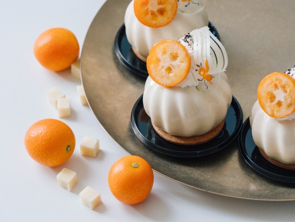 中には、宮崎県産金柑「たまたま」を使用した自家製のマーマレードと、香りをより出すためにほうじ茶のジュレを忍ばせました。