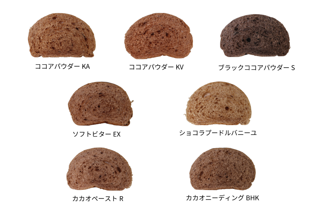 カカオマスを配合することにより、生地に練り込んだ際にもカカオの濃厚で豊かな風味が感じられます。パンやデニッシュ生地、焼き菓子など幅広いものに使用でき、焼成しても風味が飛ばないのが特徴です。
