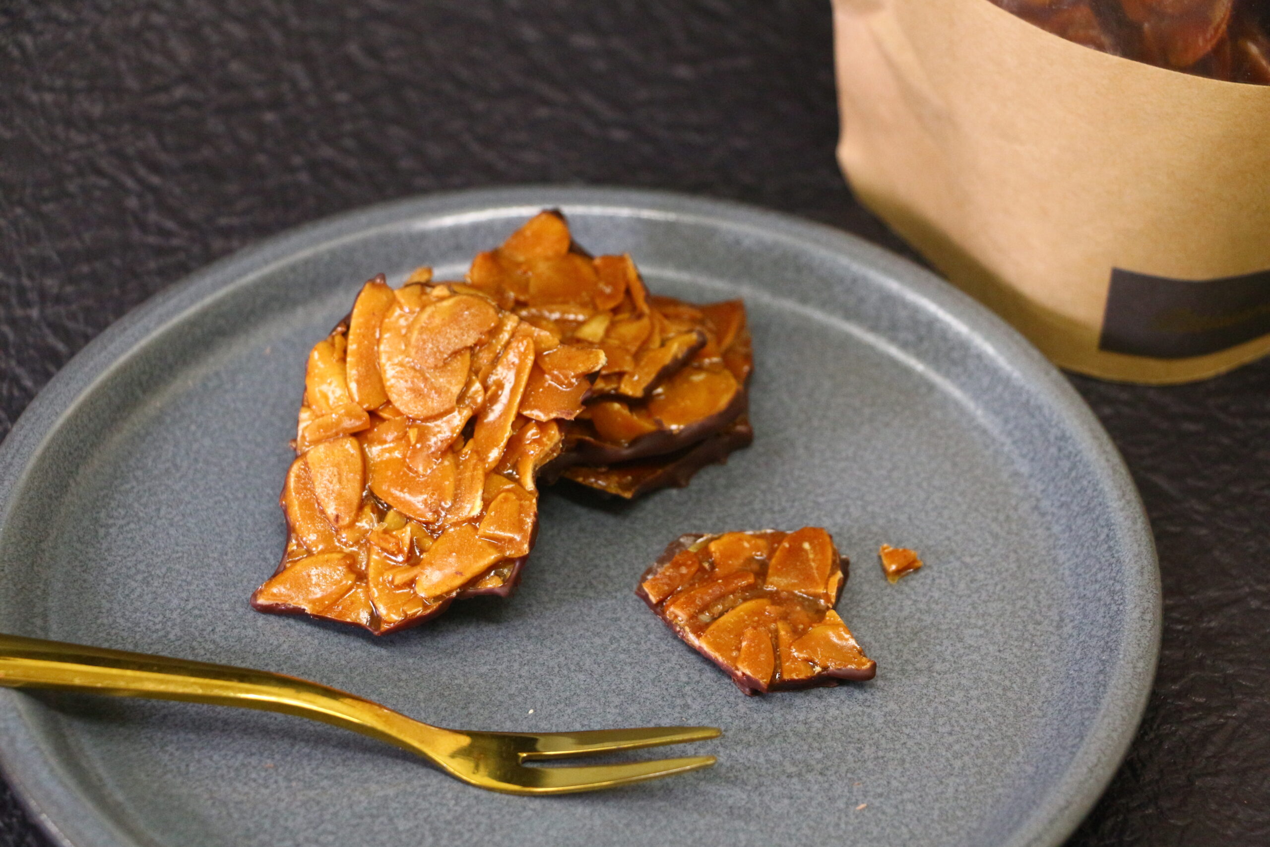 キャラメルとアーモンドが香ばしいヌガチーヌに、アンセム ピュアドミニカ共和国のコクのあるカカオ感が相性抜群です。