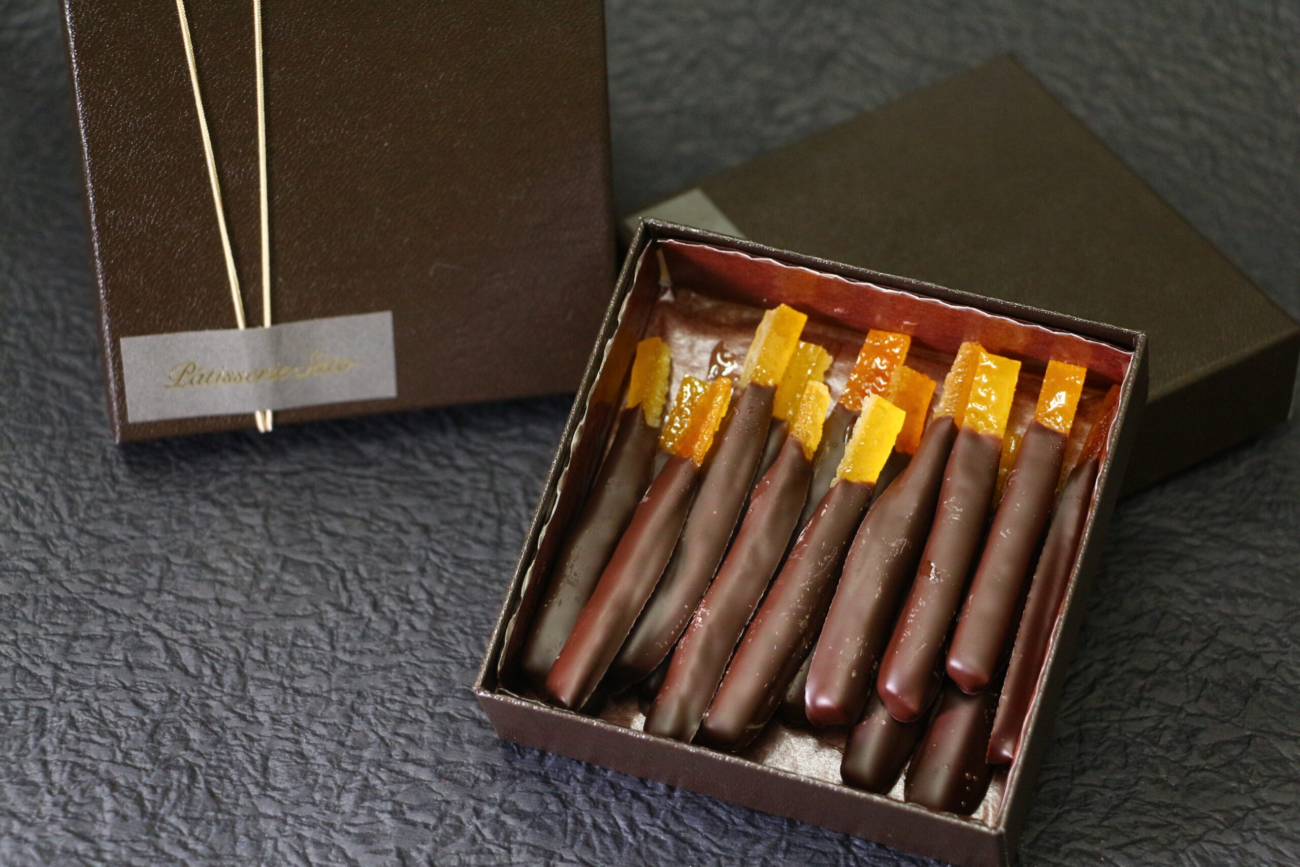 今回ご紹介するのは「オランジェ」と「ヌガチーヌ オ ショコラ アマンド」の2品です。弊社の業務用チョコレート「アンセム ピュアドミニカ共和国」をご使用いただきました。